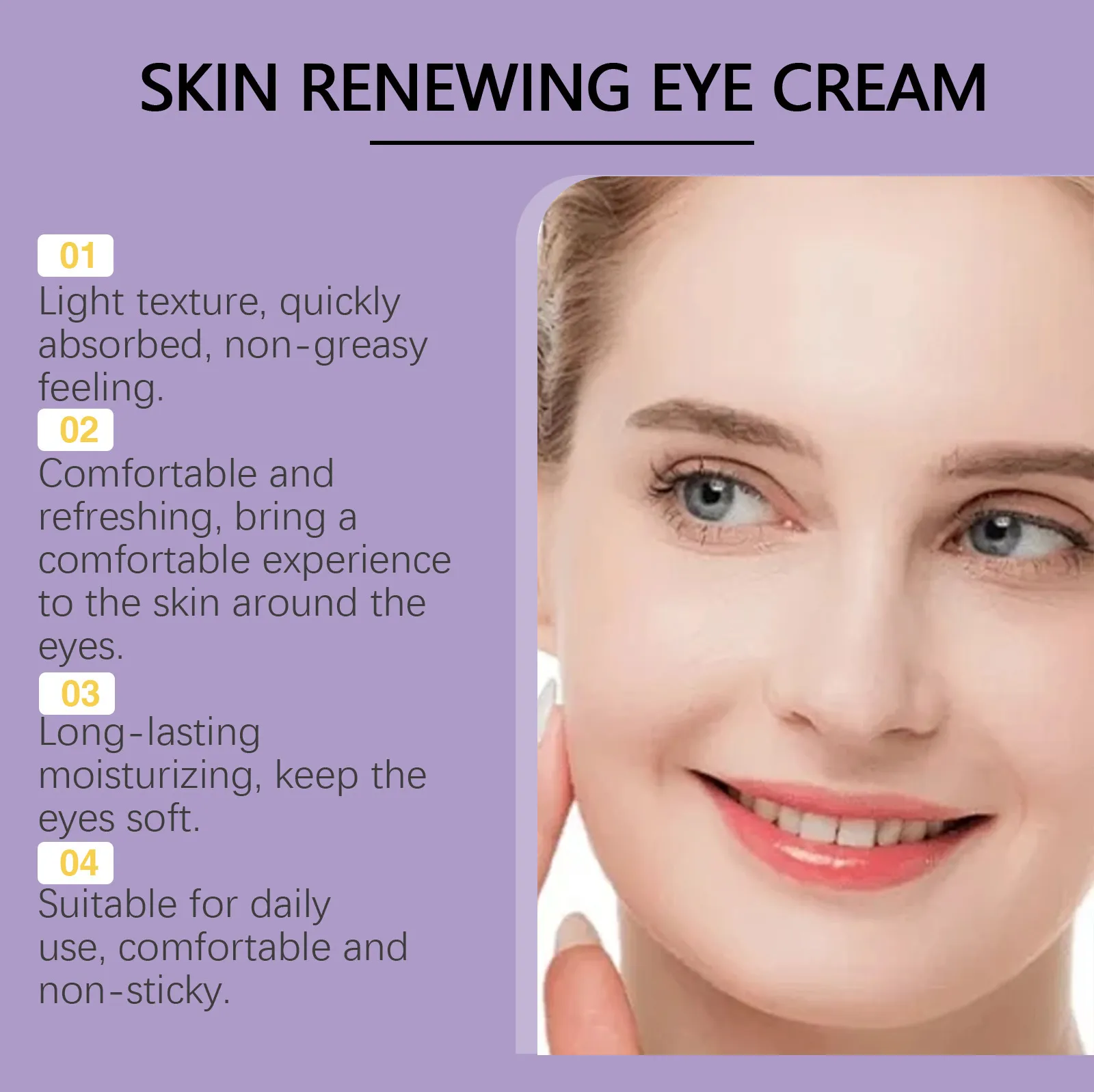The Lightweight and Smooth Texture Moisturizing Eye Cream is designed to rejuvenate the eye area while providing the hydration and care it needs to maintain a youthful, refreshed appearance.