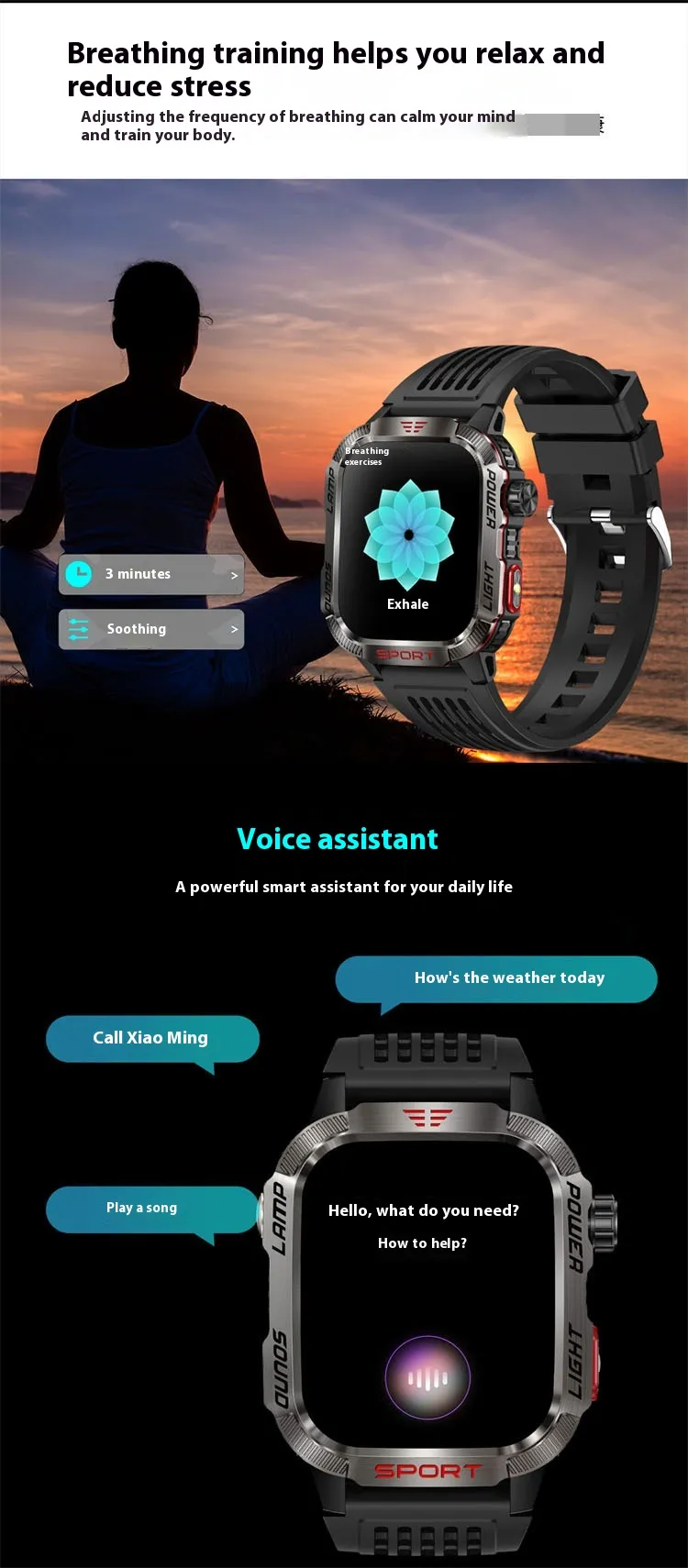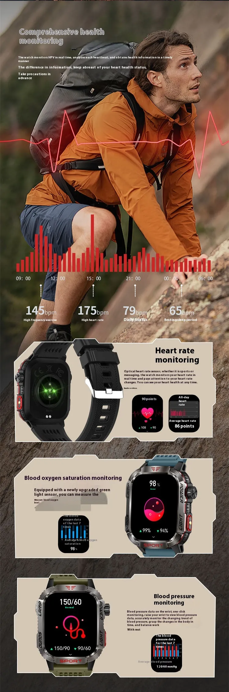 Functions: Waterproof, step counting, heart rate monitoring, blood pressure measurement, social entertainment, Bluetooth calling, smart