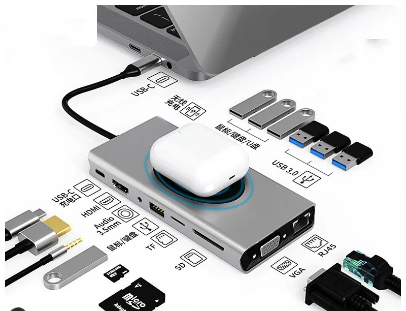 Number of interfaces: 4 in 1, 5 in 1, 6 in 1, 10 in 1, 13 in 1 (wireless charging), 14 in 1 (dual HDMI/wireless charging), 15 in 1 (wireless