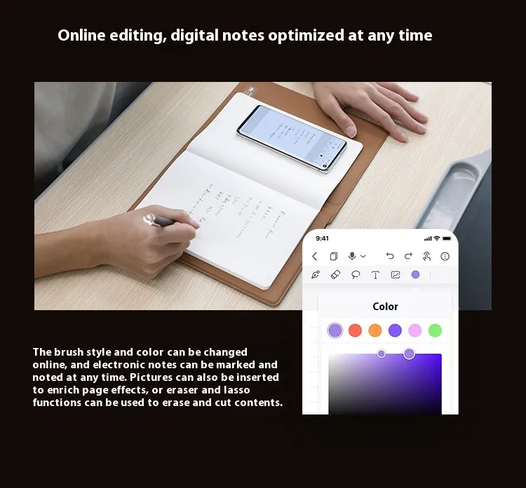 Designed with a sleek and professional aesthetic, the Huion Note X10 Smart Digital Book is compact and stylish. The high-quality black leather cover adds a touch of sophistication, making it ideal for corporate environments.