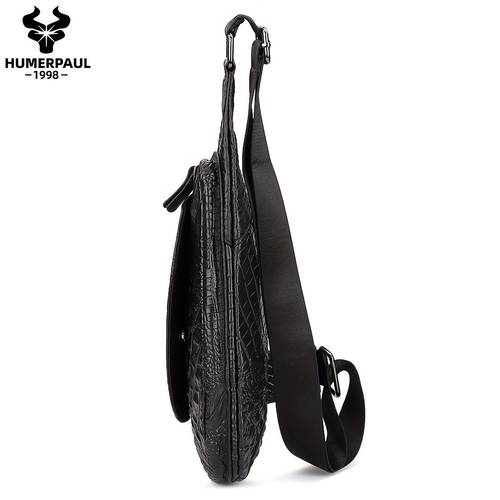 HUMERPAUL Mens Genuine Leather Crossbody Bag Stylish Alligator Pattern with Multi-Compartment Design for Daily Commute