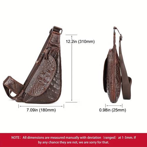 The HUMERPAUL Men’s Genuine Leather Crossbody Bag stands out for its combination of stylish design, practical features, and durability. Unlike many other crossbody bags, this one is crafted from top-grain leather with an alligator pattern, adding a unique and elegant flair to your wardrobe. The multi-compartment design ensures that your essentials are organized and easily accessible, while the durable zipper closure keeps your belongings secure.