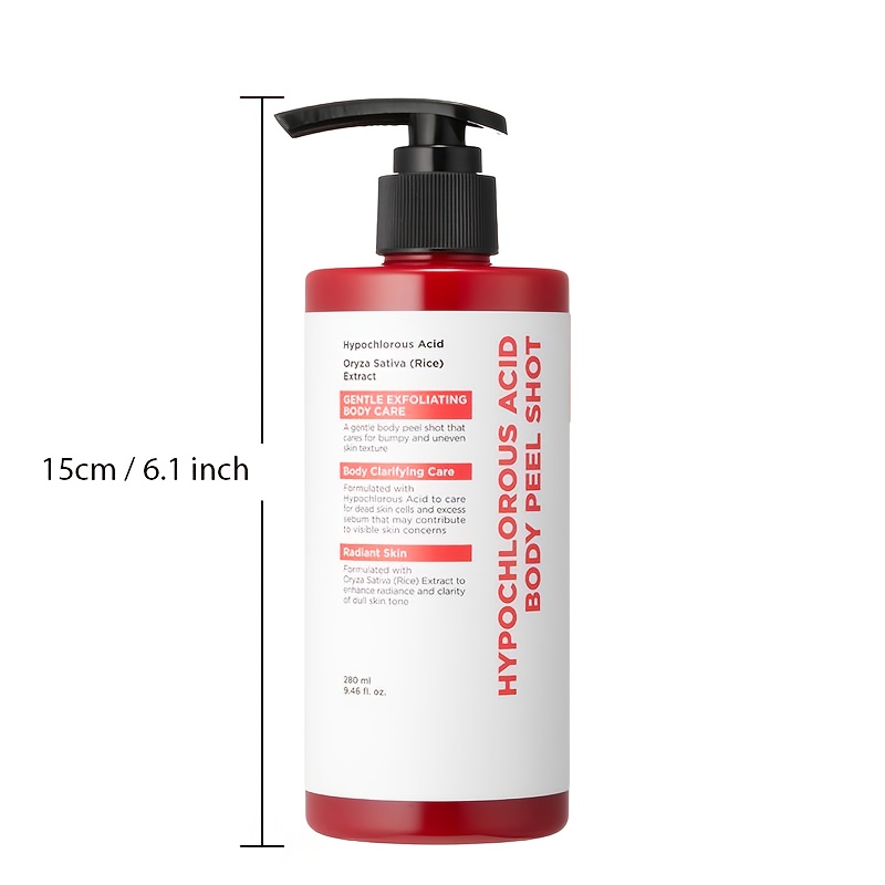 The Hypochlorous Acid Body Peel Shot is a gentle yet effective exfoliating body treatment designed to improve rough texture, clogged pores, and uneven skin tone. Formulated with Hypochlorous Acid and Oryza Sativa (Rice) Extract, this lightweight body peel helps remove dead skin cells, clarify pores, and promote radiant, healthy-looking skin without harsh irritation.