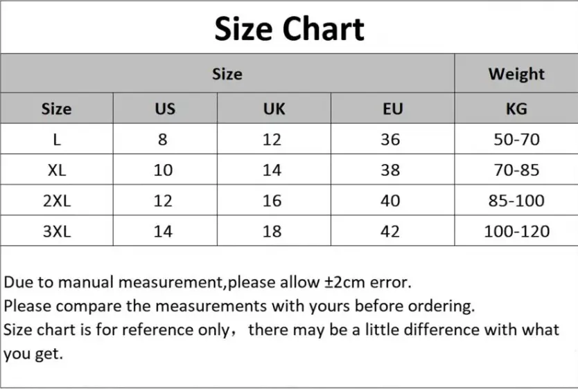 2-3cm differences due to manual measurement. 2. Please check the size chart carefully before you buy the item, if you don't know how to