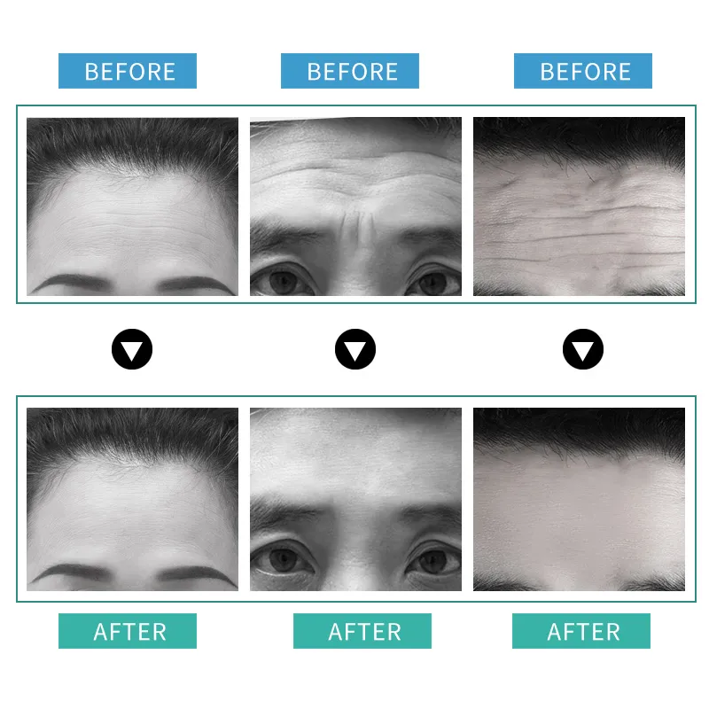 Product Efficacy: Reduces fine lines on forehead and tightens skin.