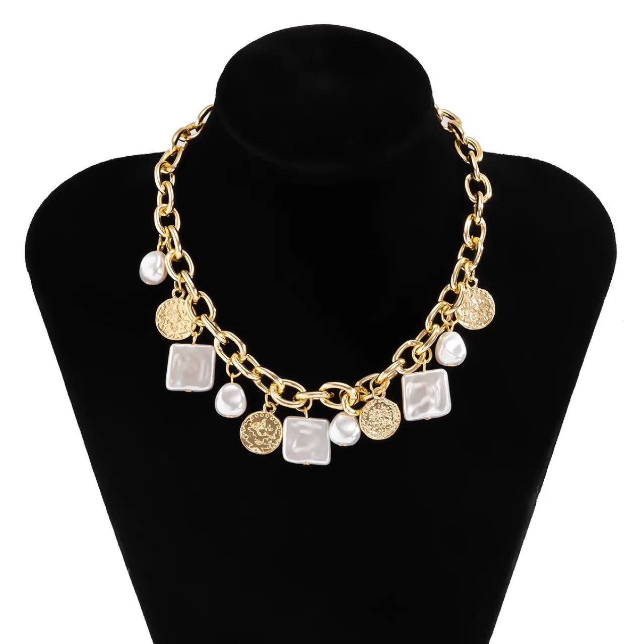 Imitation Pearl Coin Clavicle Chain Women's Retro Multi-cross Necklace