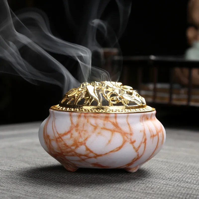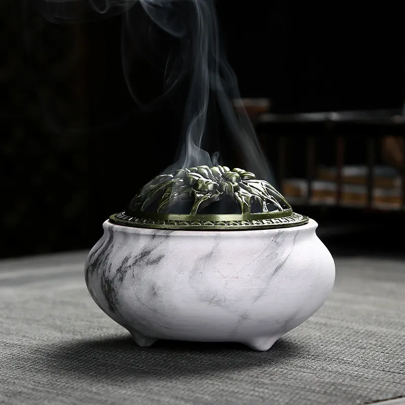 Imitation Stone Grain Incense Burner Plate Aromatherapy Incense Ceramic Stove Alloy Cover Home Decoration Incense