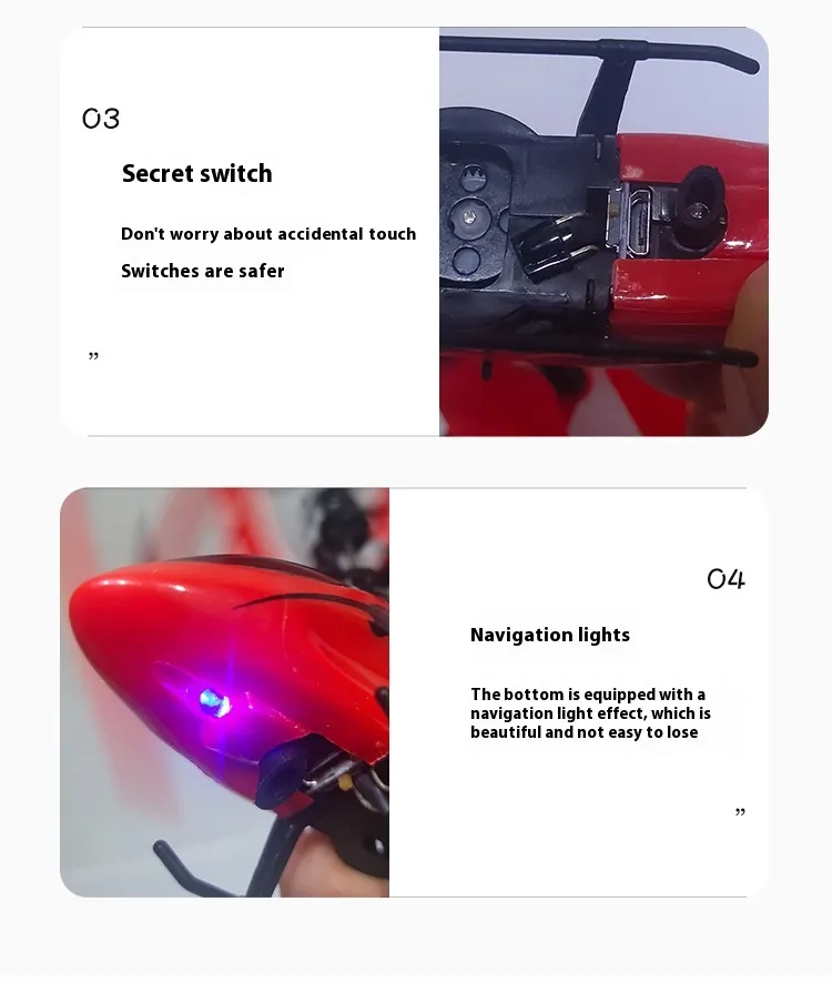 Crafted with lightweight yet durable materials, the helicopter is built to withstand bumps and falls, ensuring long-lasting play. Its LED lights add extra excitement, especially when flying indoors at night. With automatic altitude hold and easy start/stop functions, even younger children can enjoy safe and thrilling flying experiences.