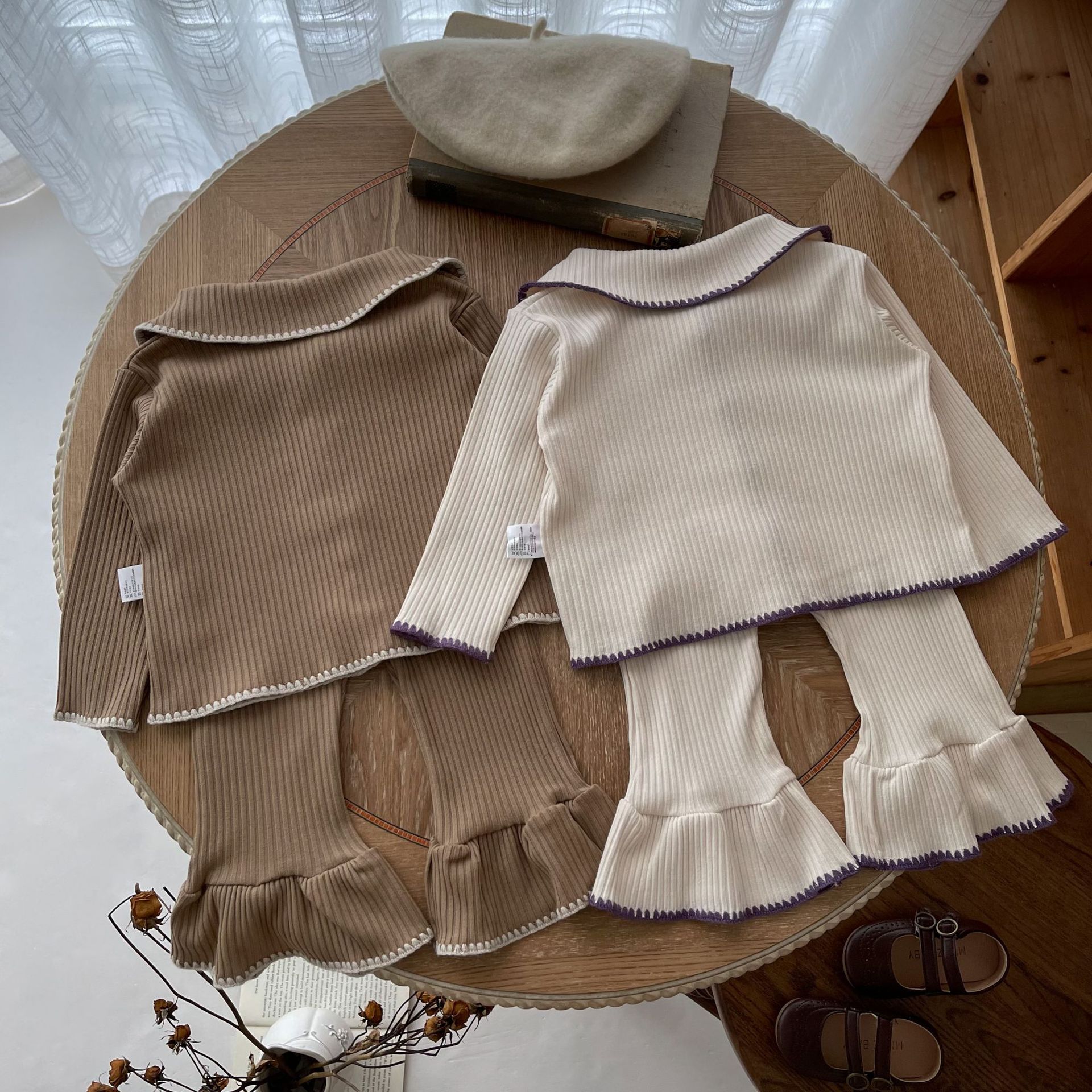 Infant Small Shell Knitted Split Suit Cardigan Bell-bottom Pants Two-piece Set