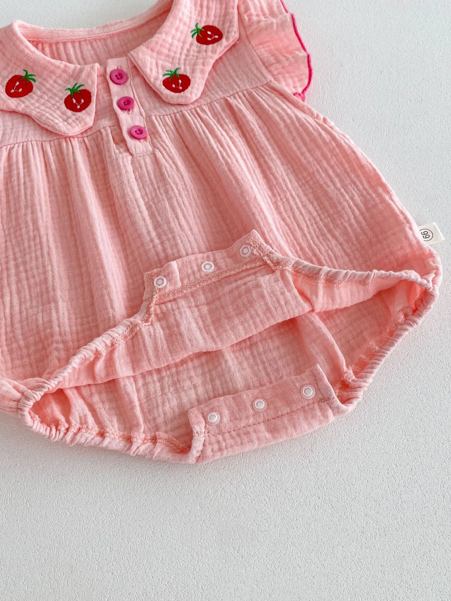 Designed for easy dressing, the Western Style Baby Girl Cloth Onesie features a cute, functional button-down design and playful details, making it the perfect go-to outfit for summer outings, playdates, or family gatherings. The one-piece design makes dressing and undressing quick and simple, while the soft material ensures your baby stays cool and cozy throughout the day.
