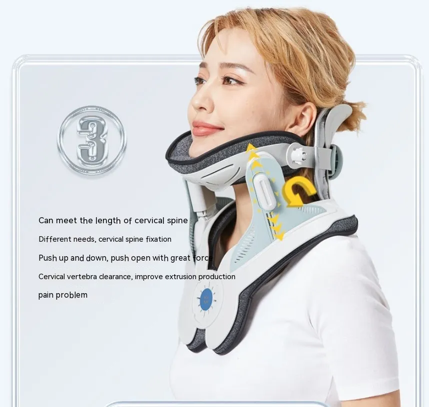 The Inflatable Adjustable Pneumatic Cervical Device is an effective tool designed to relieve neck pain and discomfort through a gentle, adjustable traction system. This device works by inflating to gently stretch and support the neck, reducing pressure on the cervical spine and encouraging proper alignment. By gradually lifting and decompressing the neck muscles, it helps to alleviate tension, reduce pain, and promote healthy posture.