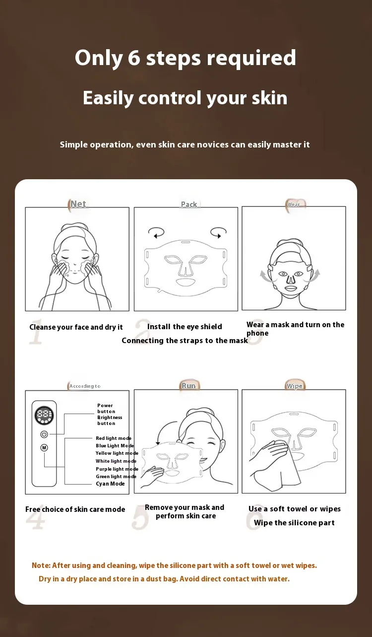 This beauty mask harnesses the power of photon therapy and LED lights to enhance your skincare routine. By emitting light waves at different wavelengths, each color penetrates your skin at varying depths, targeting specific skin issues. Whether you're aiming for skin rejuvenation, acne treatment, or improving your complexion, the mask can be tailored to suit your needs. Use it regularly to experience visible improvements in your skin's health and appearance.