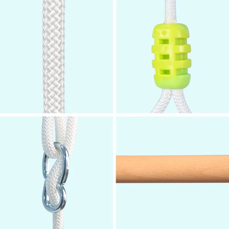 Smooth and sturdy beech wood has no edges and corners that will not damage your baby's skin. This canvas hanging swing seat can be used both