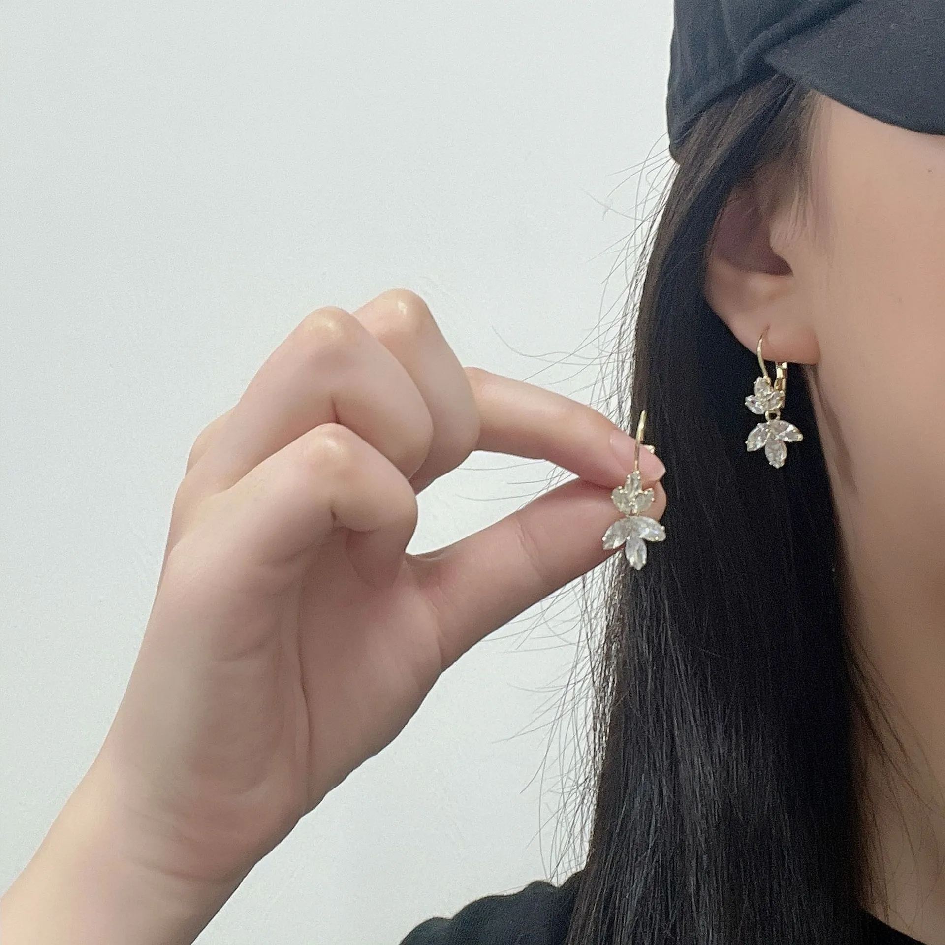 Inlaid Zircon Super Shiny Leaves Earrings – Cold & Delicate Elegance