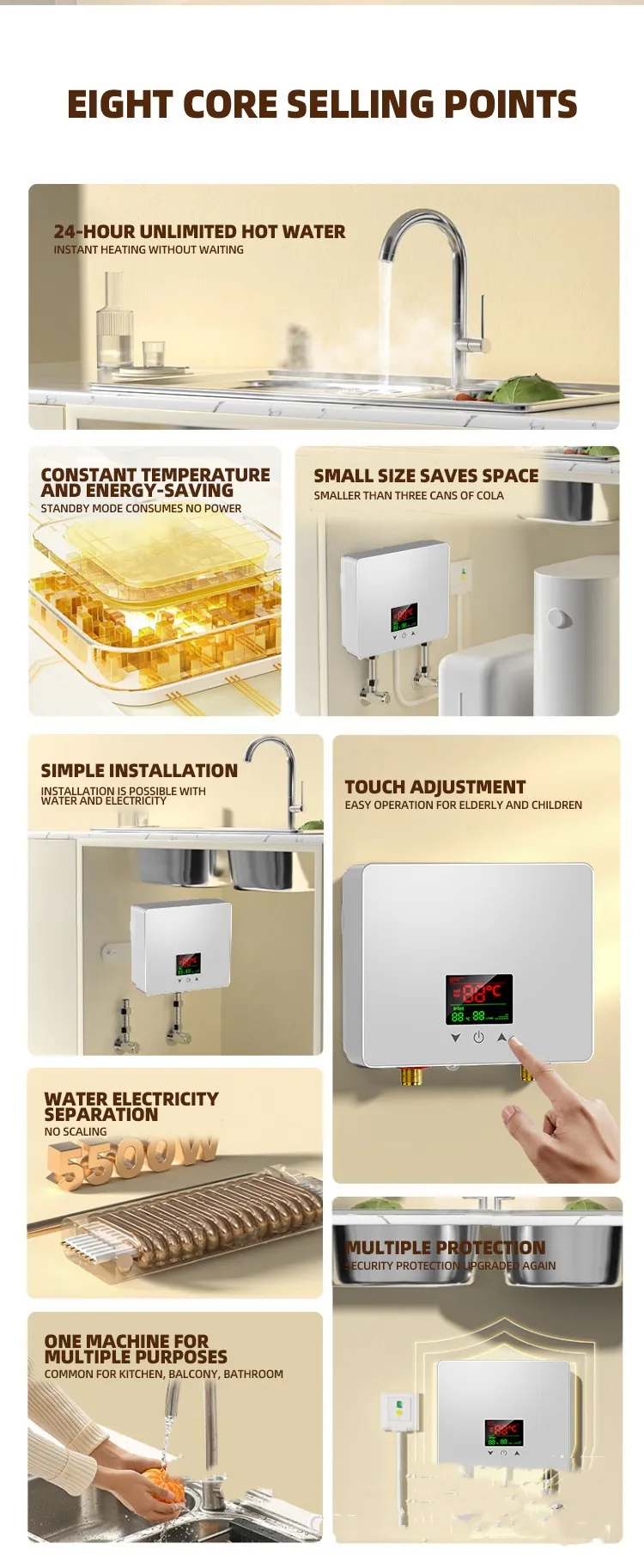 This unit stands out because of its combination of compact design, energy efficiency, and reliable safety features, which make it suitable for a broad range of applications from everyday household use to mobile and outdoor environments. With adjustable temperature control and rapid heat delivery, it enhances comfort while helping reduce water and energy waste.