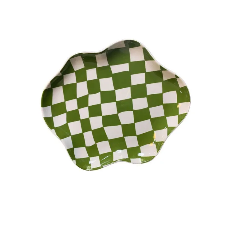 The most striking feature of the High Value Tableware Black and White Green Irregular Cloud Plate is its unconventional, cloud-inspired shape. The organic, freeform edges set it apart from traditional round plates, offering a more dynamic and modern look. This irregular shape adds visual interest and can turn any meal into an occasion, making it perfect for both casual meals and elegant gatherings.Whether you're serving a gourmet dish or a simple homemade meal, this plate ensures that every presentation feels special and thoughtful. Its unique design enhances the overall aesthetic of your table and provides a fresh alternative to standard dinnerware.