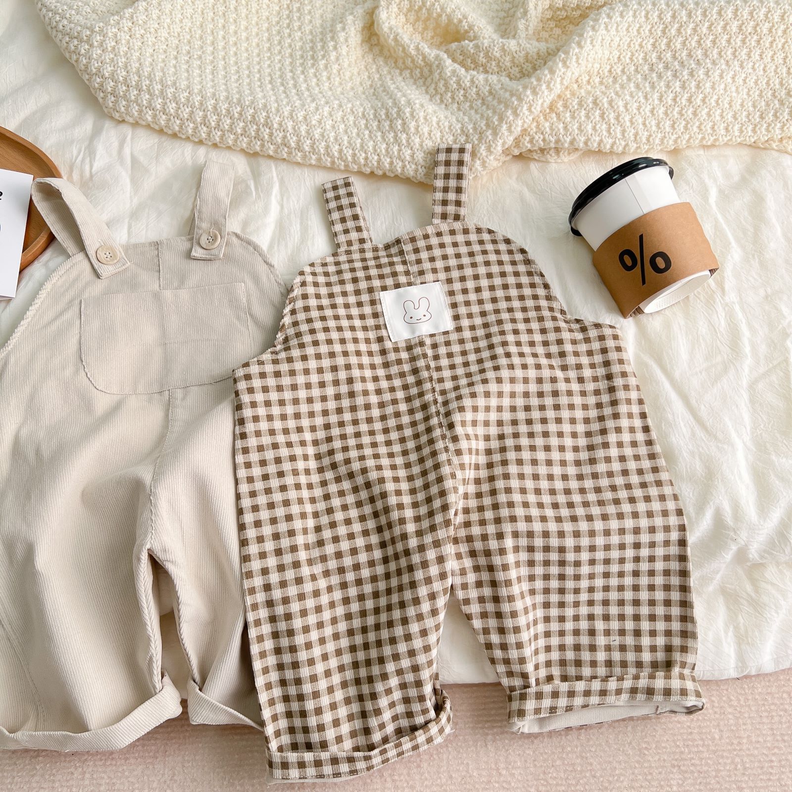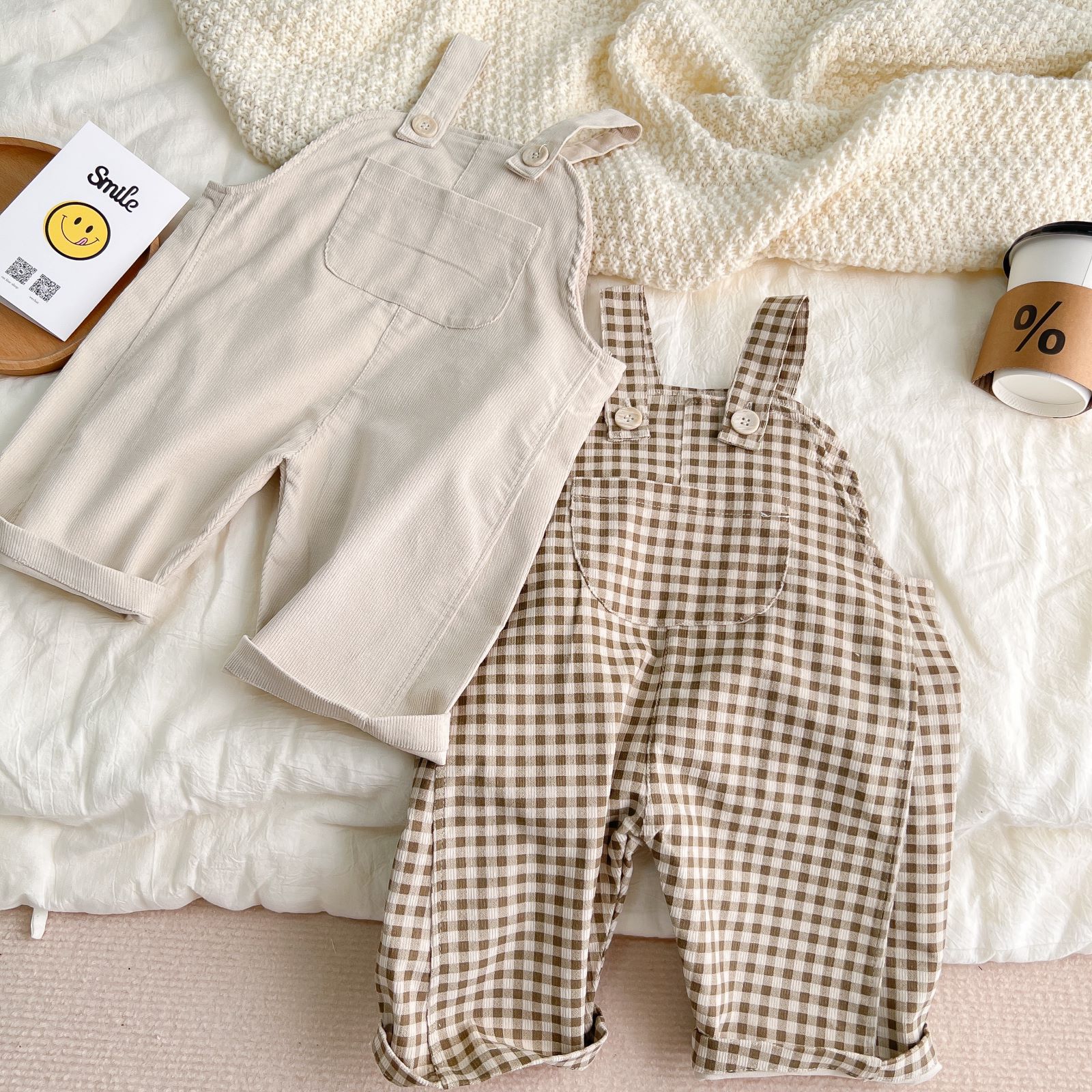 INS Pop Spring and Autumn Infant Simple Plaid Corduroy Overalls – Cozy and Stylish for Your Little One