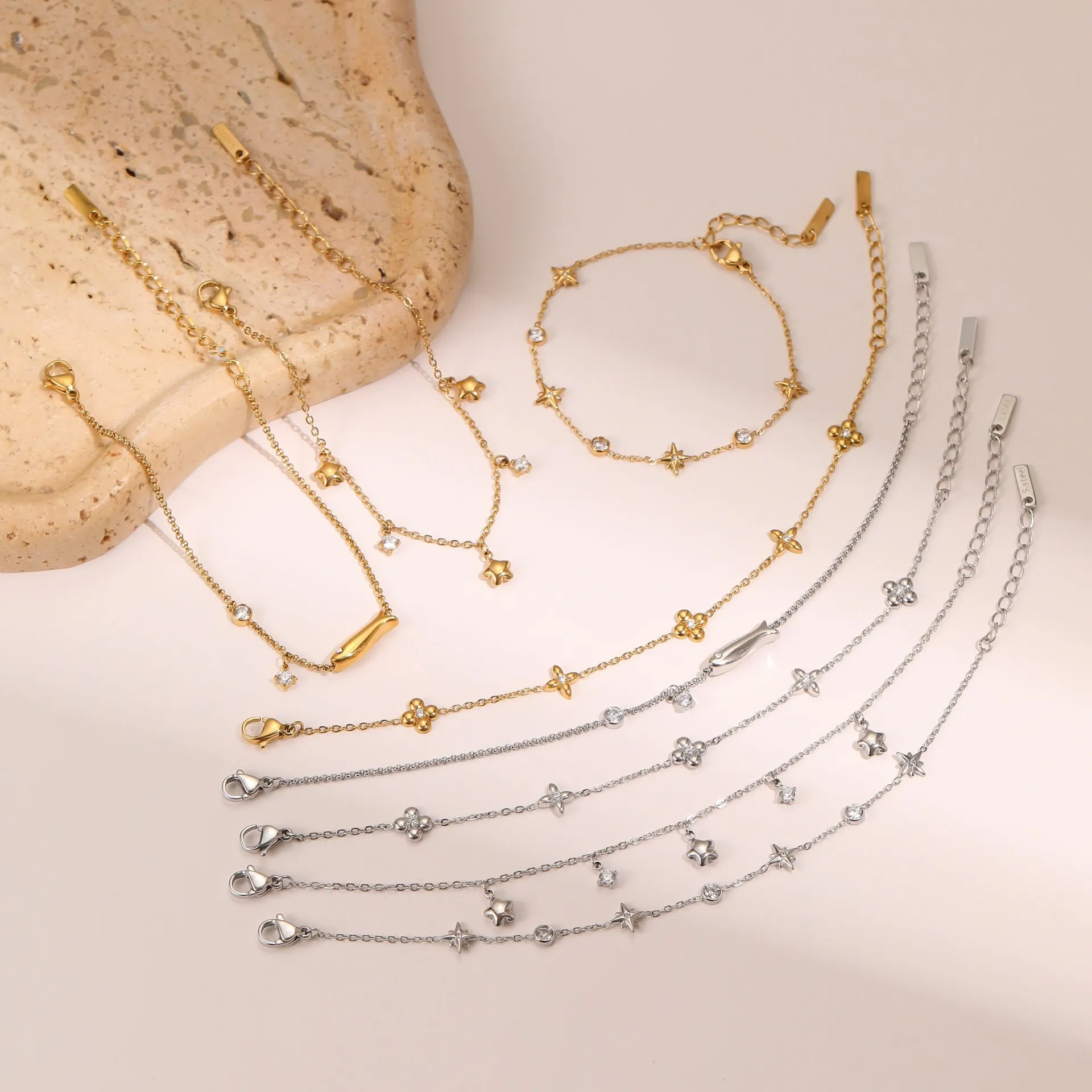 Ins Titanium Steel Bracelet 18K Gold Plating Zircon Star Pendant Exquisite
