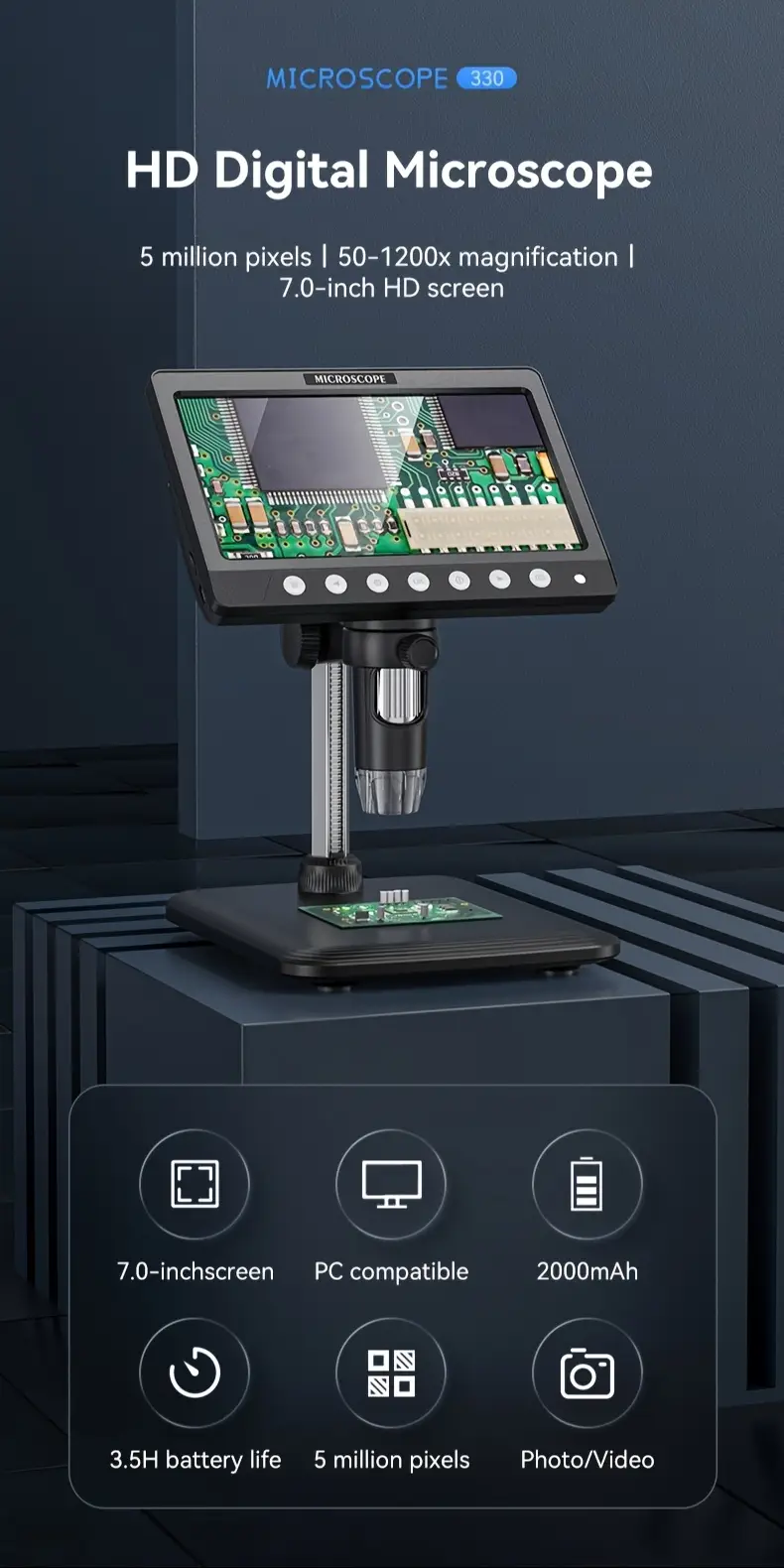 inskam Digital Microscope with 17.78cm HD LCD