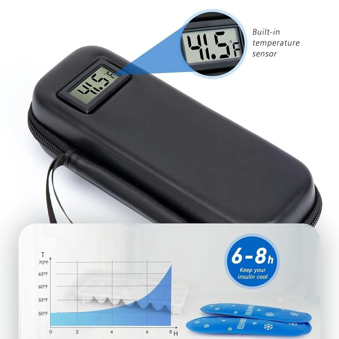 The case uses high-quality insulation to slow heat transfer, helping maintain a stable internal temperature for insulin and other