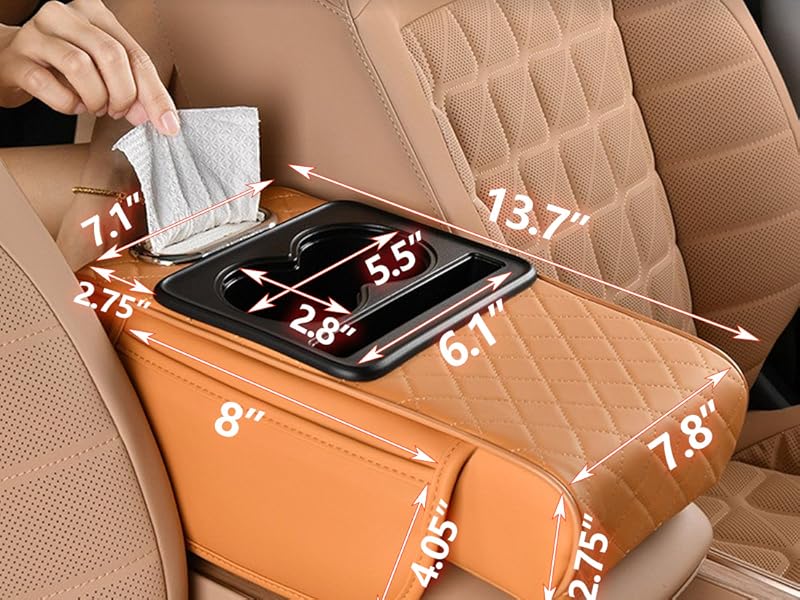 1. Multi functional design storage: equipped with upgraded metal card slots and paper drawing holes, three layers of velvet storage bags that are three-dimensional and non drying, and polymer classification storage and placement.2. Comfortable height: Tap on beneficial support, effectively reduce elbow pressure, and drive easily.3. High quality material: NAPA leather with a skin friendly touch, beautiful and atmospheric grid pattern, selected high elasticity sponge for the inner core, not easy to deform, 6S rebound, soft yet resilient rebound touch.4. Easy to install: Velcro design, easy to install, does not affect the use of the armrest box, effectively