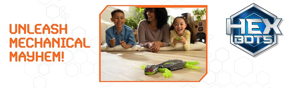 collection of toy figures & playsets, building toys, STEM Toys, RC Cars and fighting games with HEX BOTS robotics!