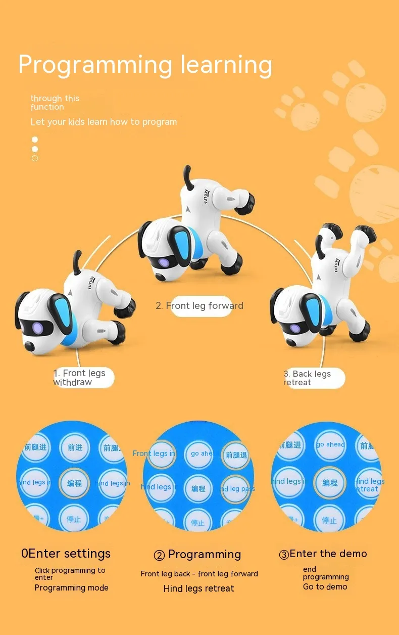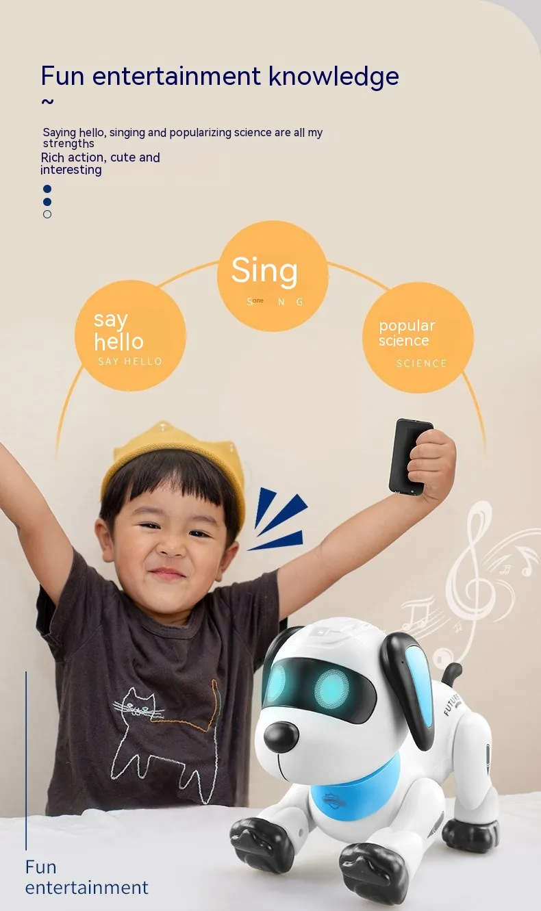 Toy dog,remote control, 2.5V lithium battery, USB charging cable*1 Product Image: