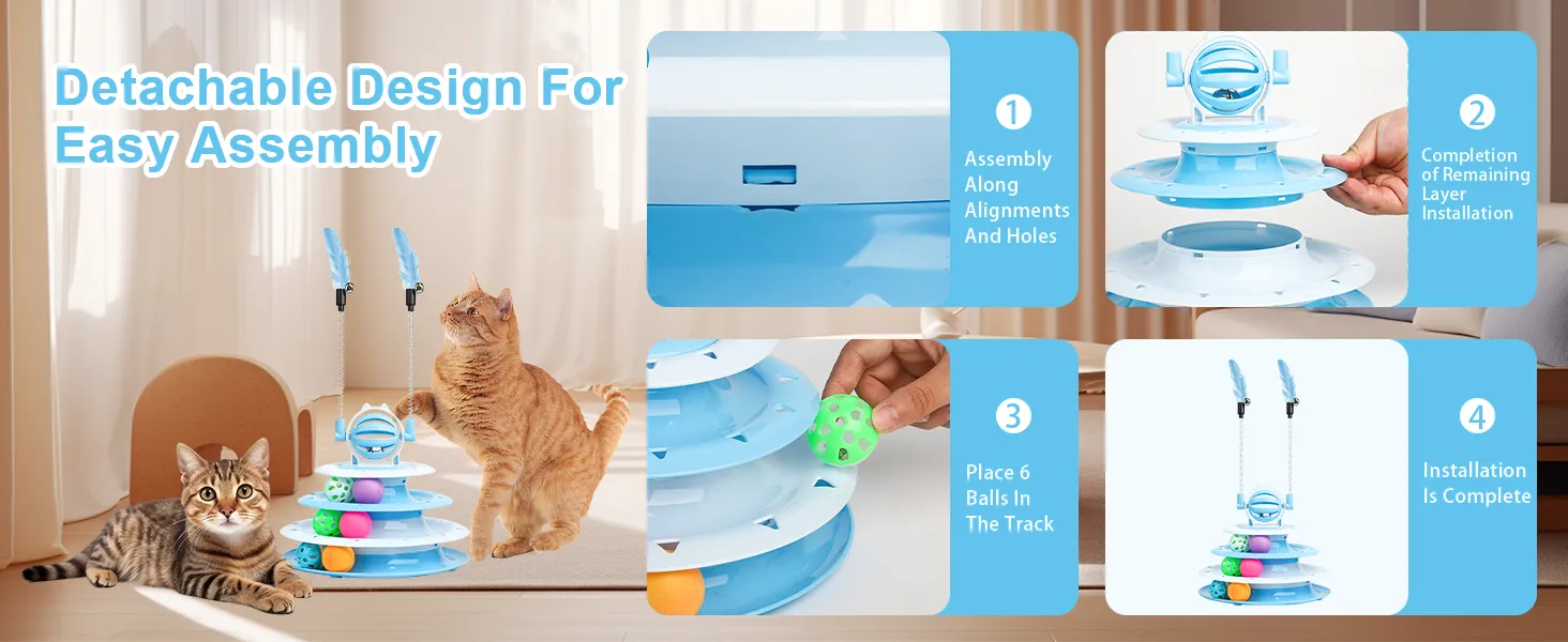 Intimate details:cat ball toy are made of selected PP material, environmentally friendly and odorless, smooth slide, no flying balls or stuck balls, and with multiple non-slip pads at the bottom design, non-slip and sturdy, cats play with more peace of mind!