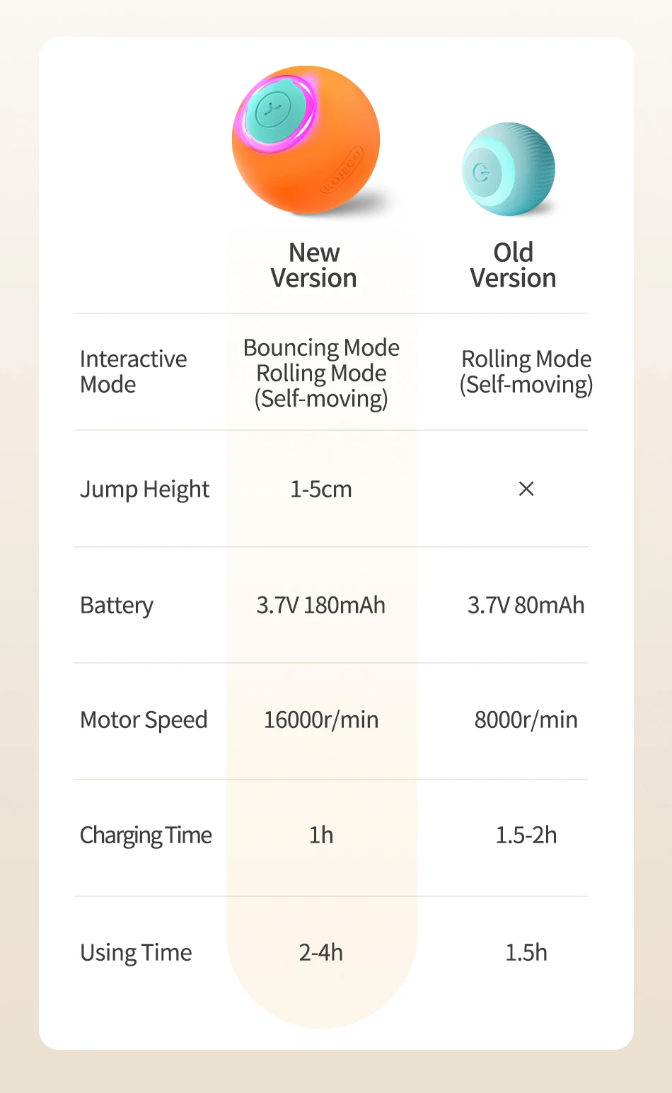 A sleek, modern design that seamlessly integrates into your home decor, while simultaneously igniting your cat's natural instincts for exploration and play. Crafted with premium materials and cutting-edge technology, this bouncing ball boasts a mesmerizing self-moving feature that mimics the unpredictable movements of prey, instantly captivating your cat's attention and sparking their hunting instincts.