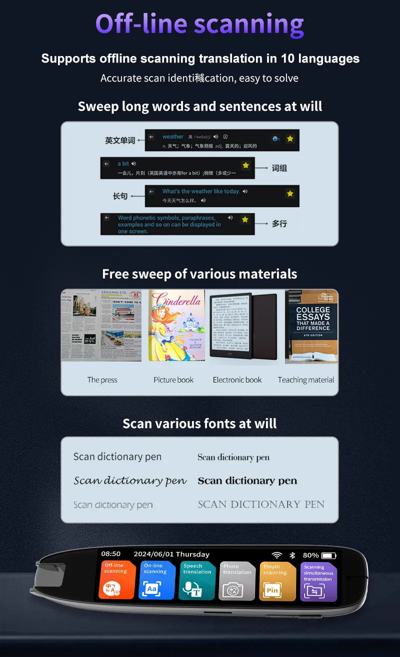 Portable and Convenient: Unlike bulky dictionaries or translation apps, this pen is lightweight, compact, and easy to