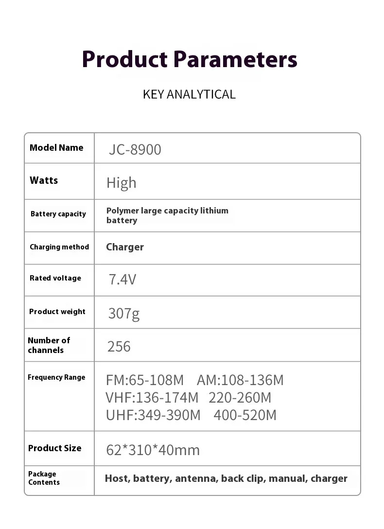 Full Band Communication: Supports a wide frequency range for clear, reliable communication across long distances.