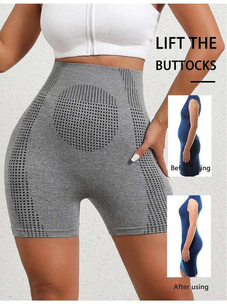 Ion Fiber Shaping: Micro-vibration massage module ion fiber repair shaping shorts help shape a smooth body shape. High elastic fabric tightly wraps the waist, abdomen and buttocks, enhances the shaping effect, and makes the body curve naturally symmetrical
