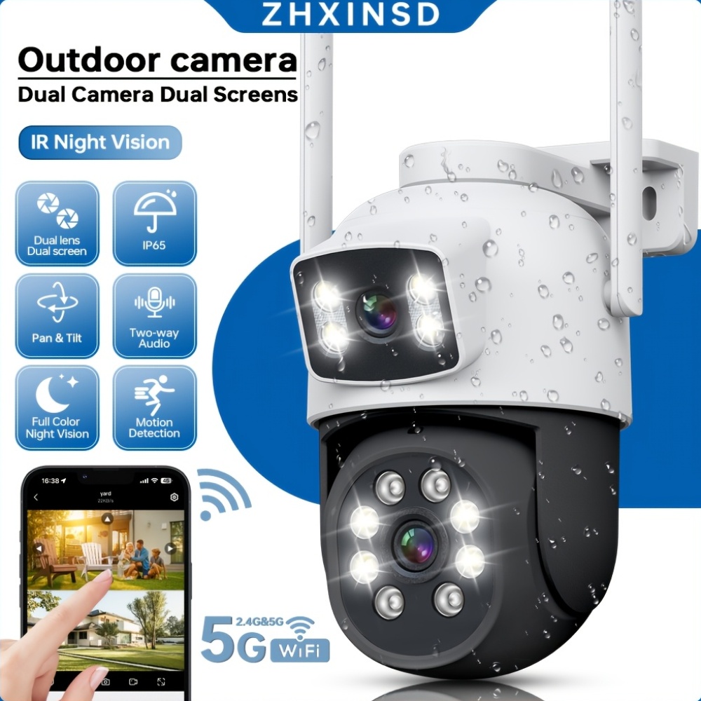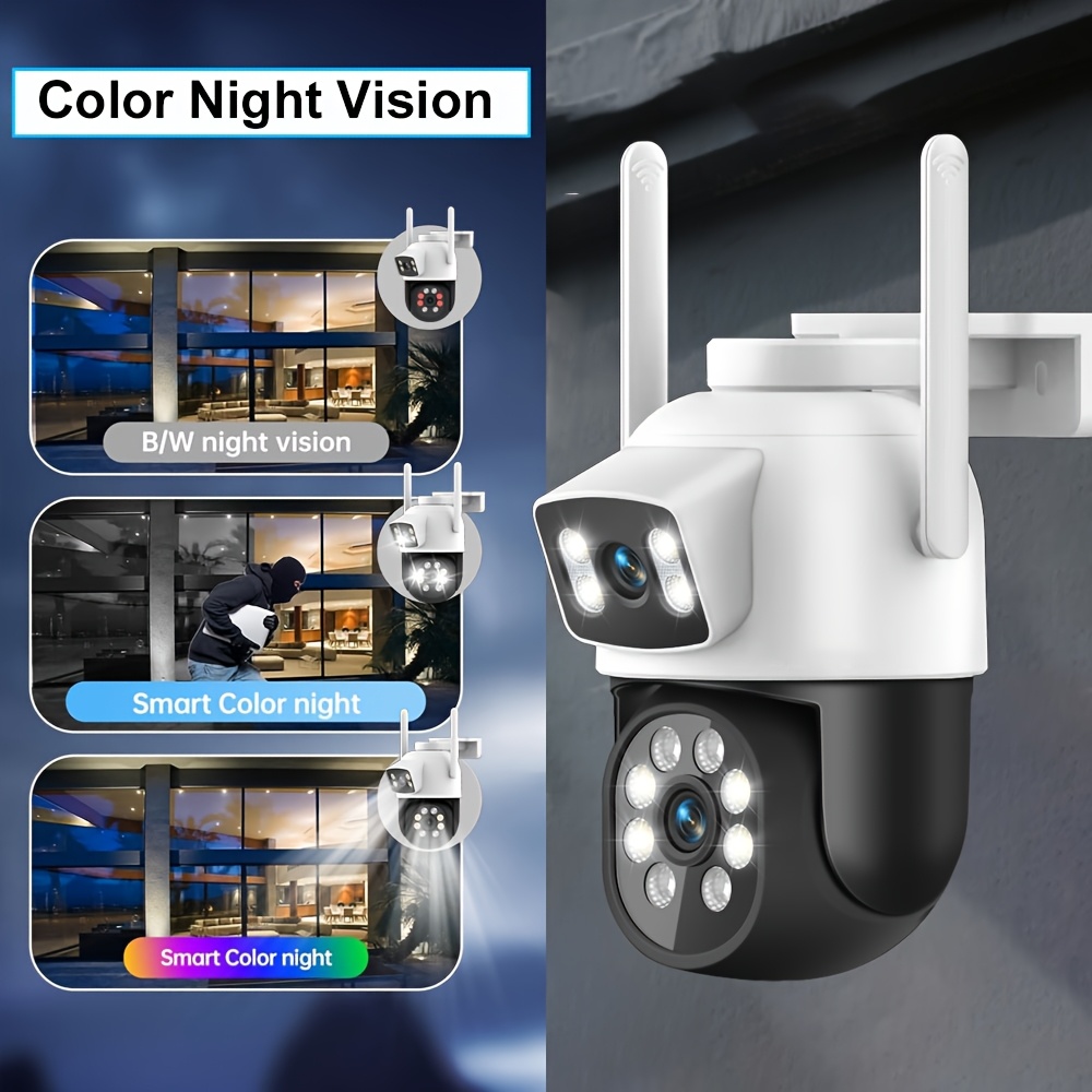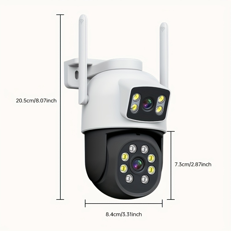 Equipped with dual-lens technology and advanced night vision LEDs, it delivers clear, detailed footage even in complete darkness. The integrated WiFi connectivity allows you to monitor your home remotely in real time, providing peace of mind wherever you are. Its durable housing and intelligent design make it ideal for long-term outdoor use.