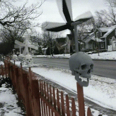 The jaw opens and closes as the blades turn in the wind. Will be sure to draw attention to your yard, garden or patio. This spinner could make a great way to make your Halloween display really stand out.