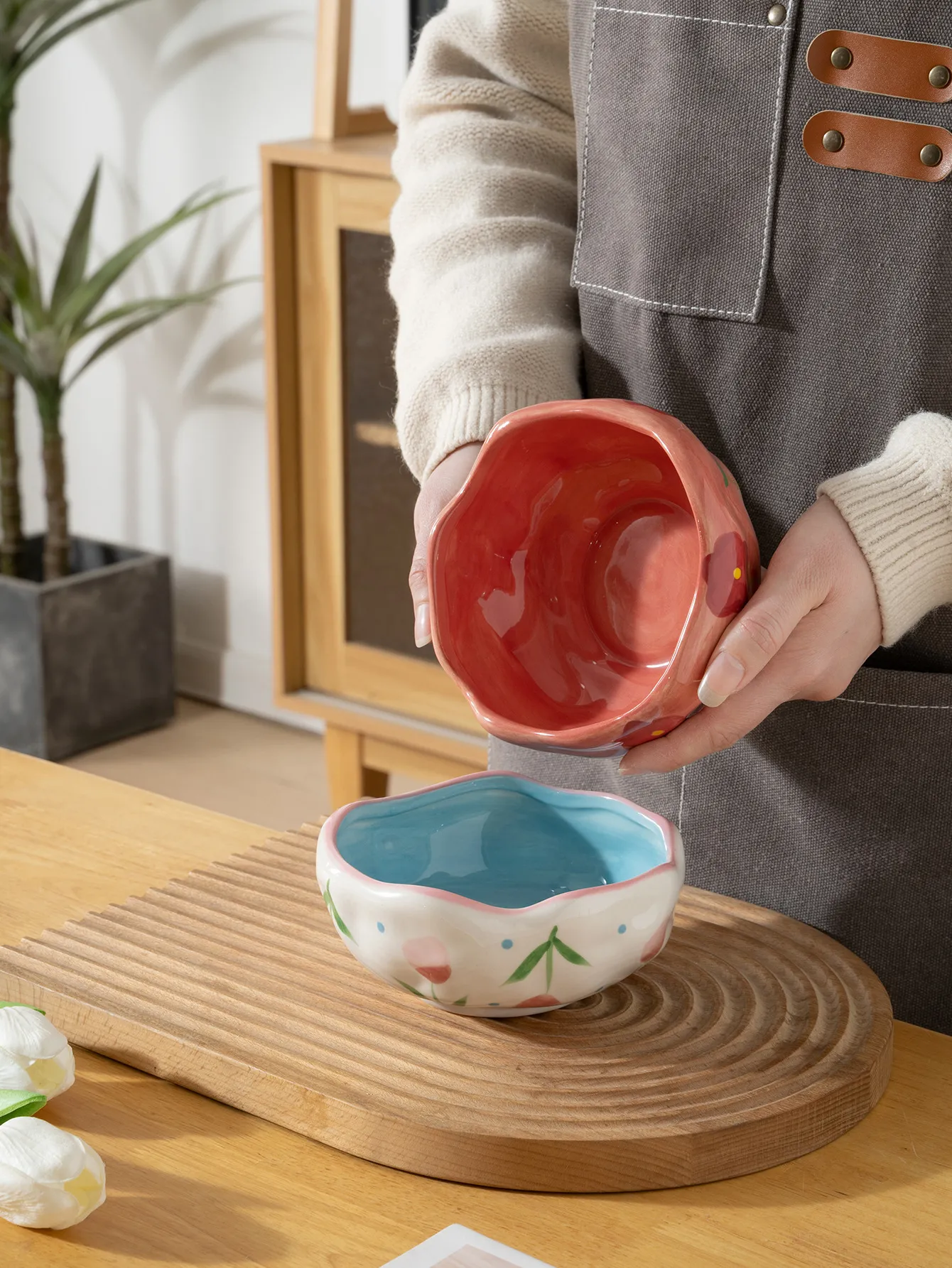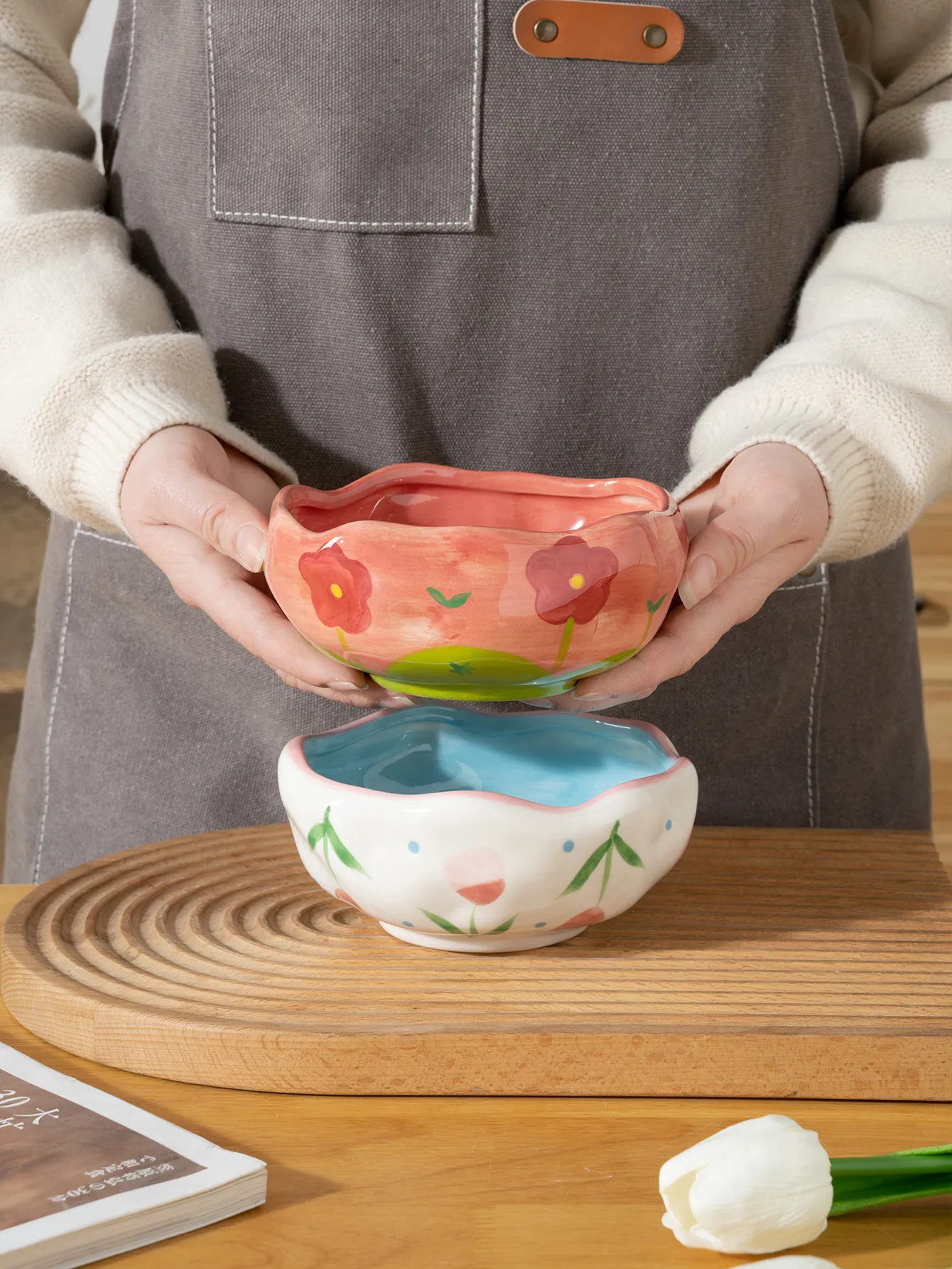 Irregular Hand Drawn Flowers Print Household Ceramic Bowl