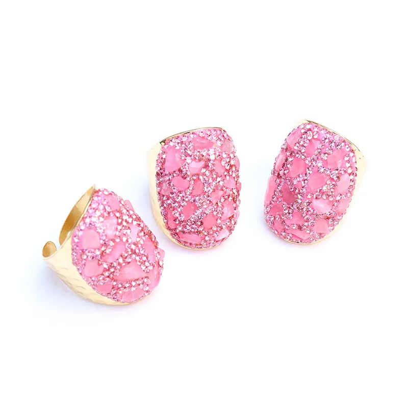 Introduction to the Irregular Pink Crystal Rose Natural Stone Women’s Ring