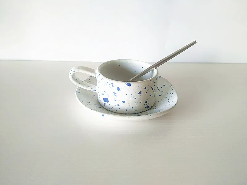 Irregular Spray Point Mugs And Saucers Starry Blue Style