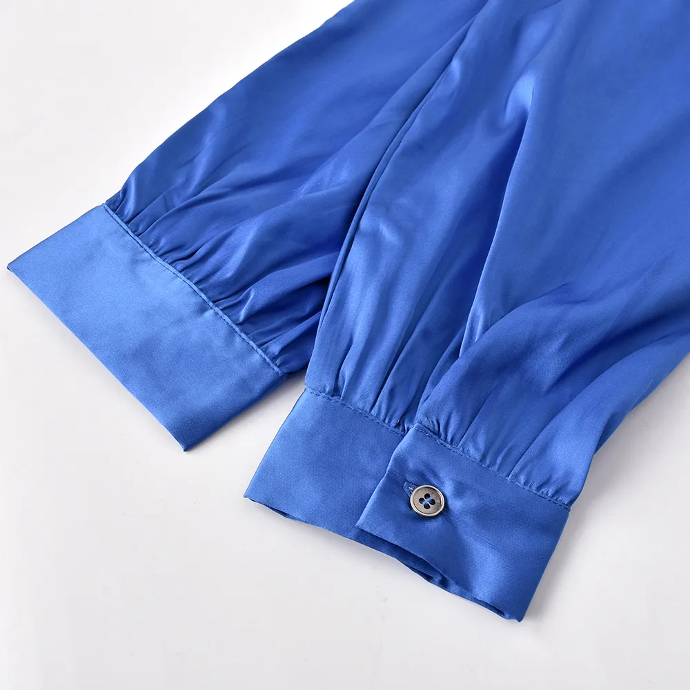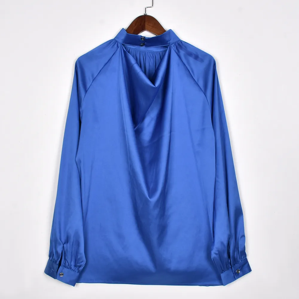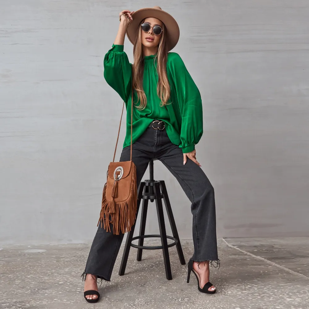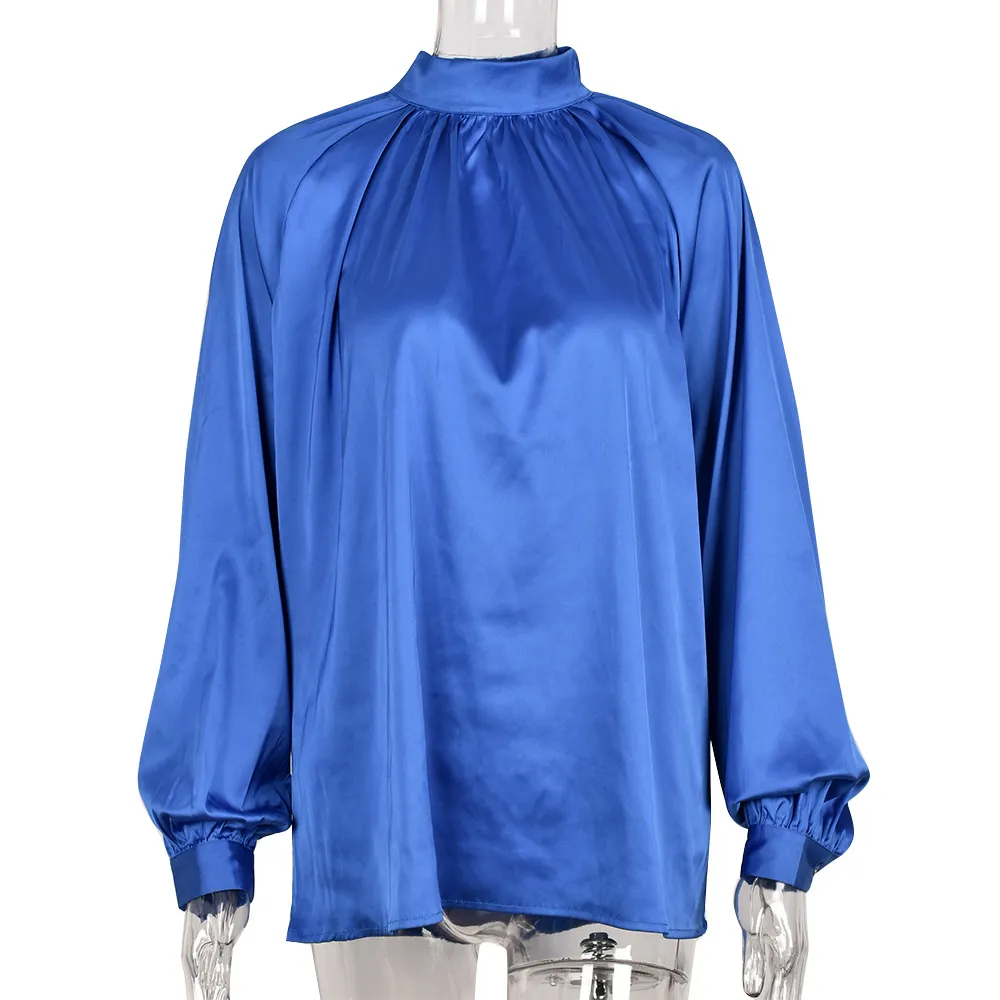 Irregular Stand Collar Stitching Lantern Sleeve Shirt Top