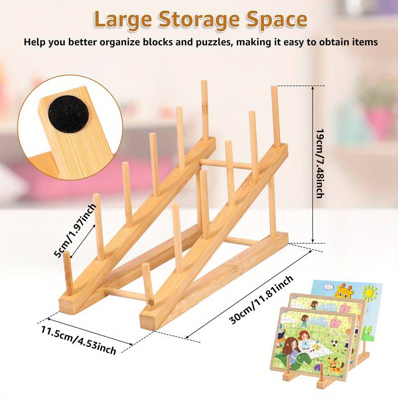 Made from durable wood, this rack provides a secure and stable place to store your puzzles. The sturdy construction ensures that it can handle puzzles of various sizes, providing long-lasting support for your collection.