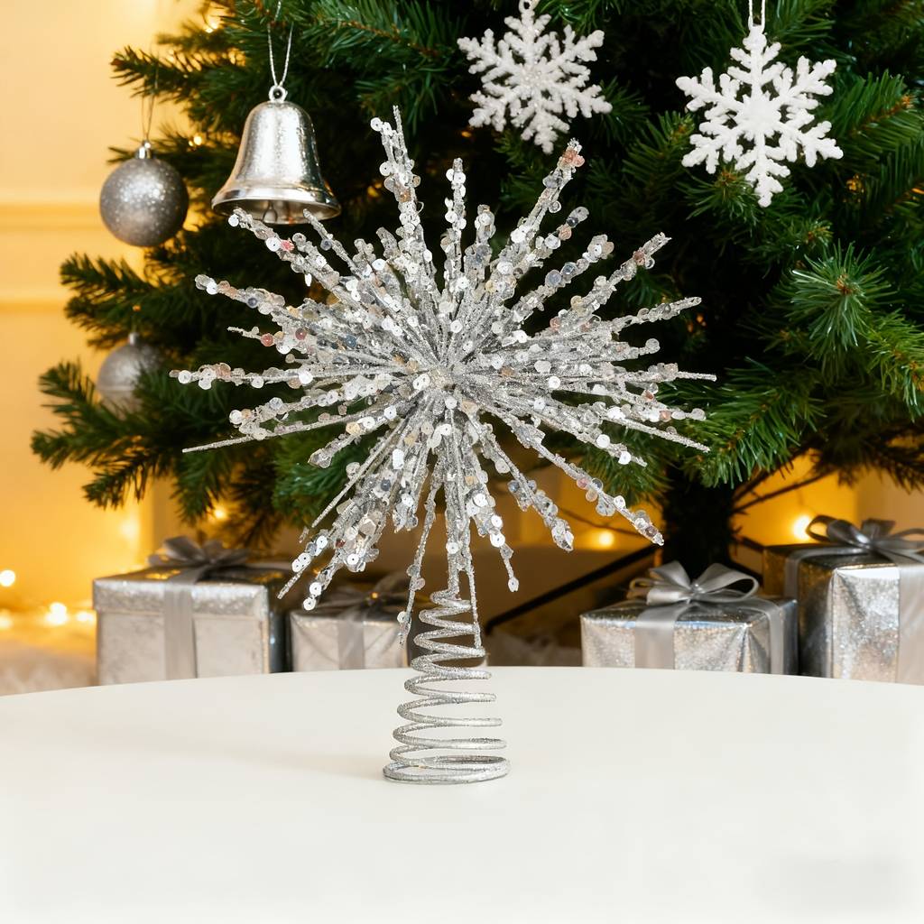 ITECHJOY Silvery & Golden Firework-Shaped Christmas Tree Topper – Add a Spark of Magic to Your Holiday Tree