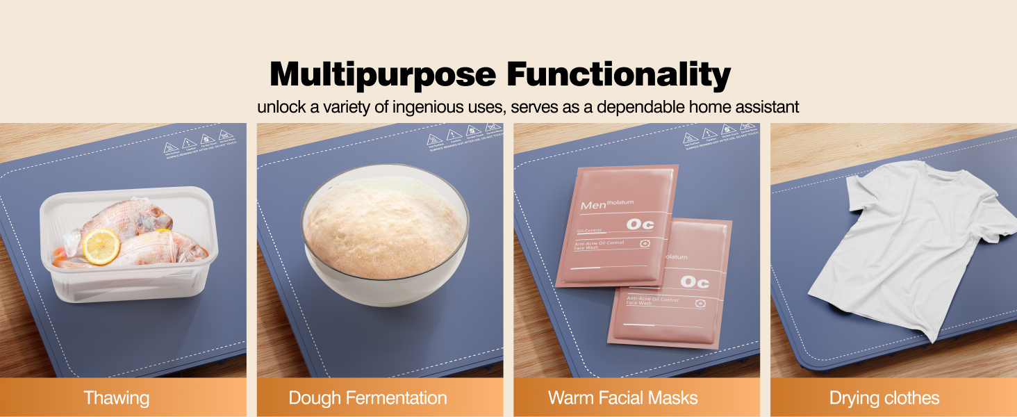 - ใ๐๐๐ซ๐ฌ๐๐ญ๐ข๐ฅ๐ ๐๐ง๐ ๐๐ฌ๐ฌ๐๐ง๐ญ๐ข๐๐ฅใ: Besides serving as an excellent food warmer mat for dishes, this portable food warmer is also suitable for heating milk, defrosting frozen food, and drying certain items. It is a versatile and indispensable tool for every household, designed to assist you effortlessly