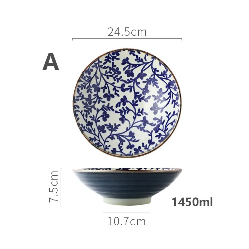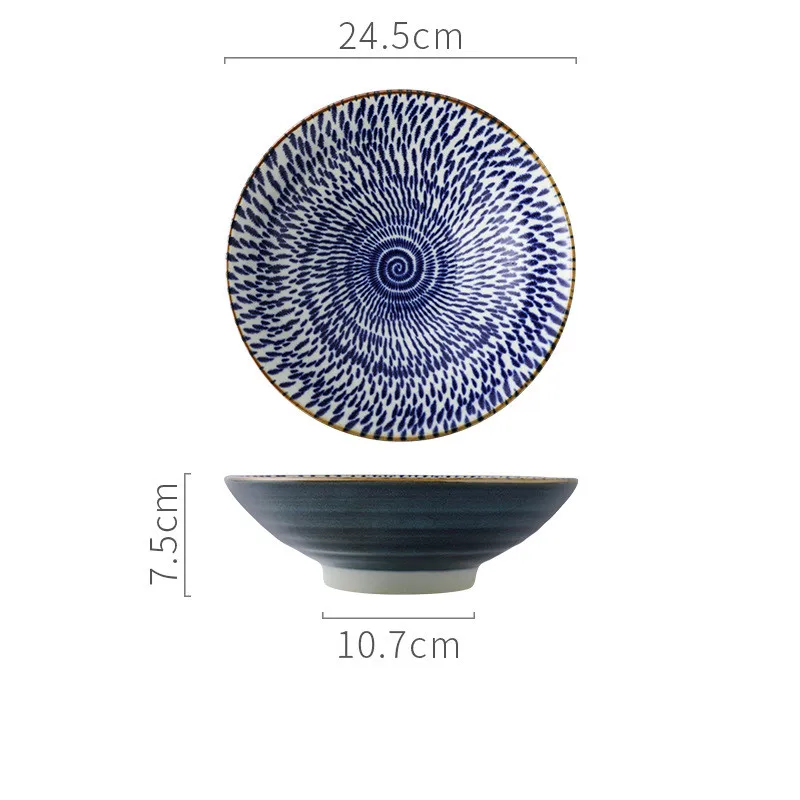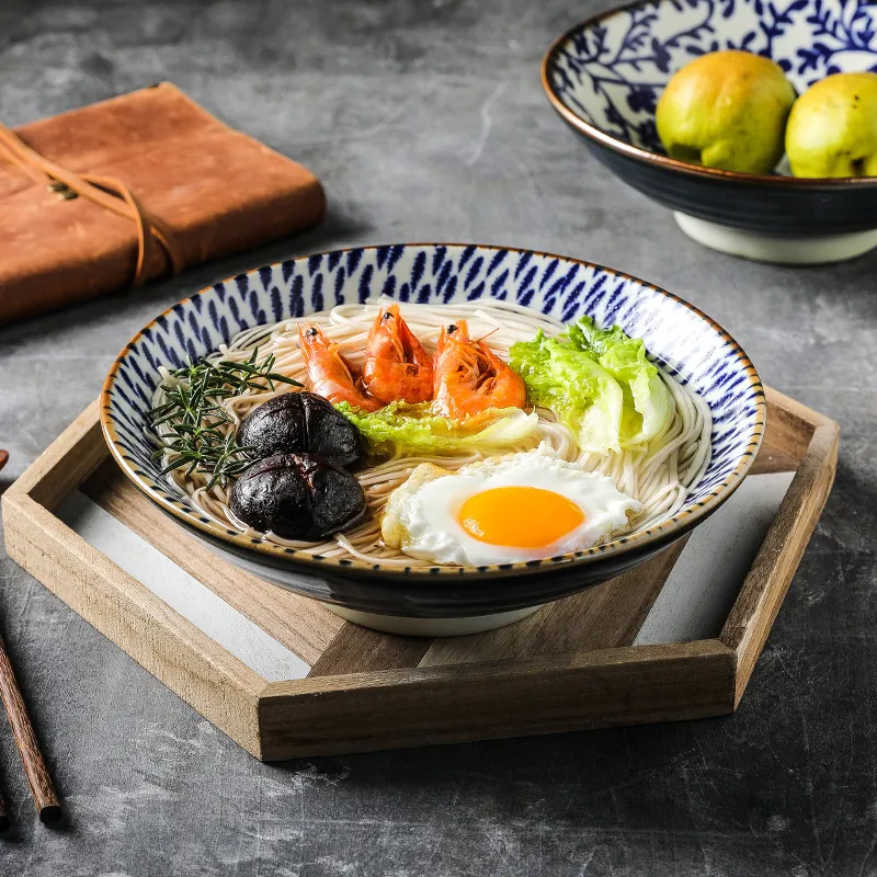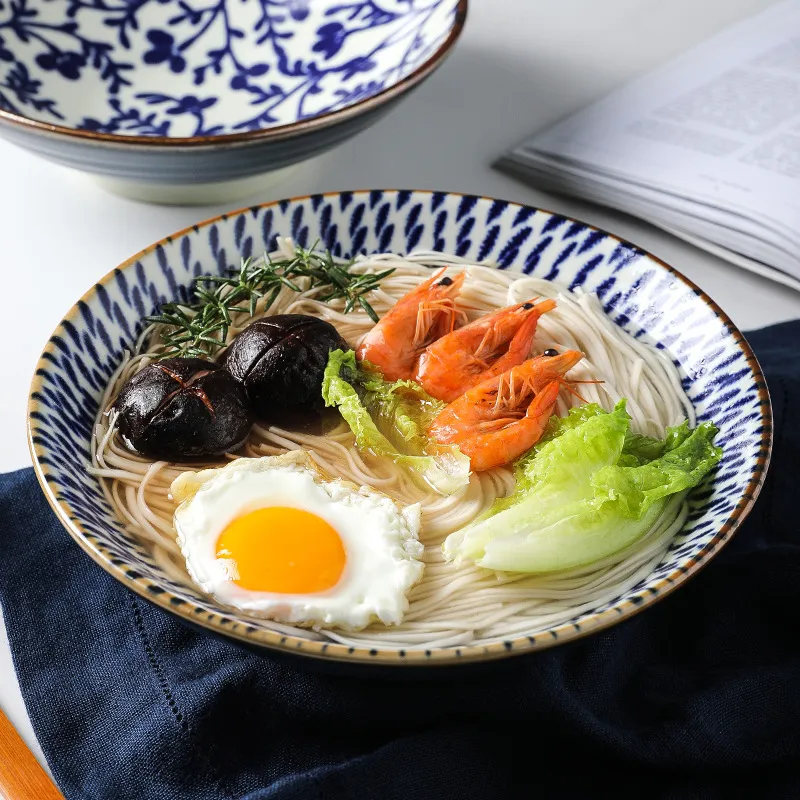 The Japanese Thread Homemade Underglaze Retro Ceramic Bowl is ideal for serving traditional Japanese dishes such as ramen, soba, or udon. Its wide, deep design allows you to fill it generously with broth, noodles, and toppings, making it perfect for enjoying a flavorful, hearty meal. The bowl's elegant design enhances the dining experience, creating a visually pleasing meal that combines taste with aesthetics.