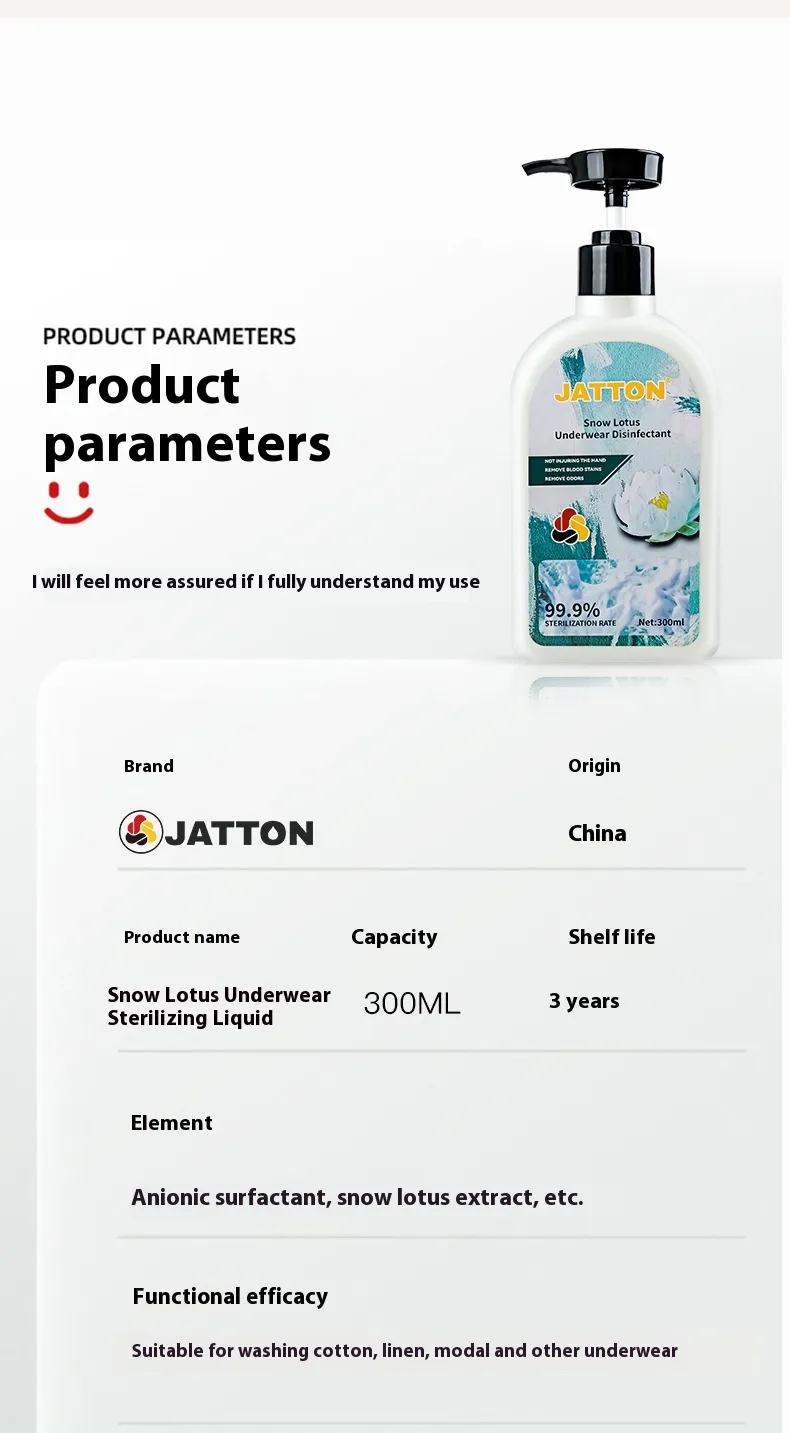 JATTON Snow Lotus Underwear Disinfectant 99.9% sterilization rate, mild low-foam formula for hygienic, gentle underwear cleaning and odour removal.