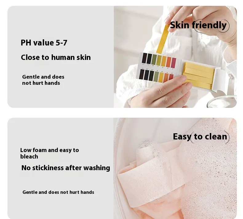 The mild formulation is designed not to damage hands during washing, offering a balanced solution that supports both cleanliness and comfort. Its antibacterial performance helps reduce the risk of bacterial buildup that can occur in warm, damp fabrics, particularly in undergarments worn for extended periods.