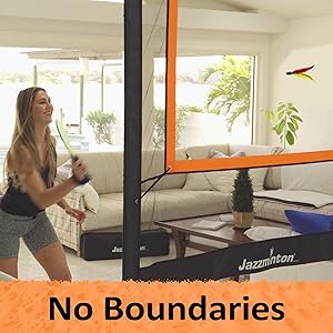 - LONG RALLIES FOR ALL AGES: We purposely constructed Jazzminton Sport to be played WITHOUT boundaries. You can hit the birdie as hard as you want, we’ve created it so it can’t fly too far where it's out of reach. Even the hardest hits are playable. Think professional badminton where the rallies can be crazy!