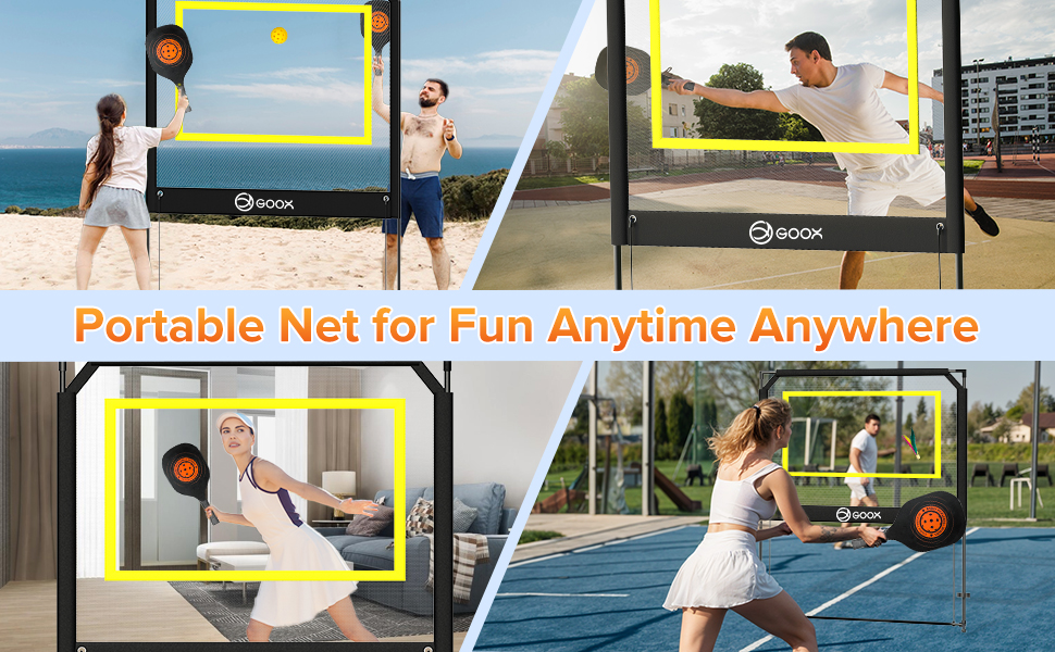 - ALL-IN-ONE PORTABLE KIT: Enjoy easy setup with our comprehensive kit that includes a user-friendly, portable net, professional-grade paddles, and a variety of balls including pickleballs and jianzi. Perfect for backyard gatherings, lawn fun, or indoor play, the customizable game rules elevate the enjoyment, ensuring endless fun for everyone!