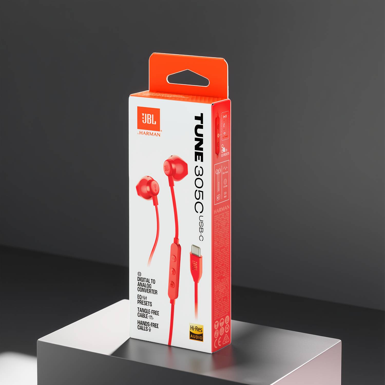 The JBL TUNE305C USB-C Wired Headphones combine modern USB-C connectivity, noise-cancelling call support, lightweight sports-ready comfort, and vivid orange styling into one practical everyday audio solution. Designed for adults who want reliable audio without battery management, these earphones offer crisp sound, clear communication, and simple plug-and-use operation.