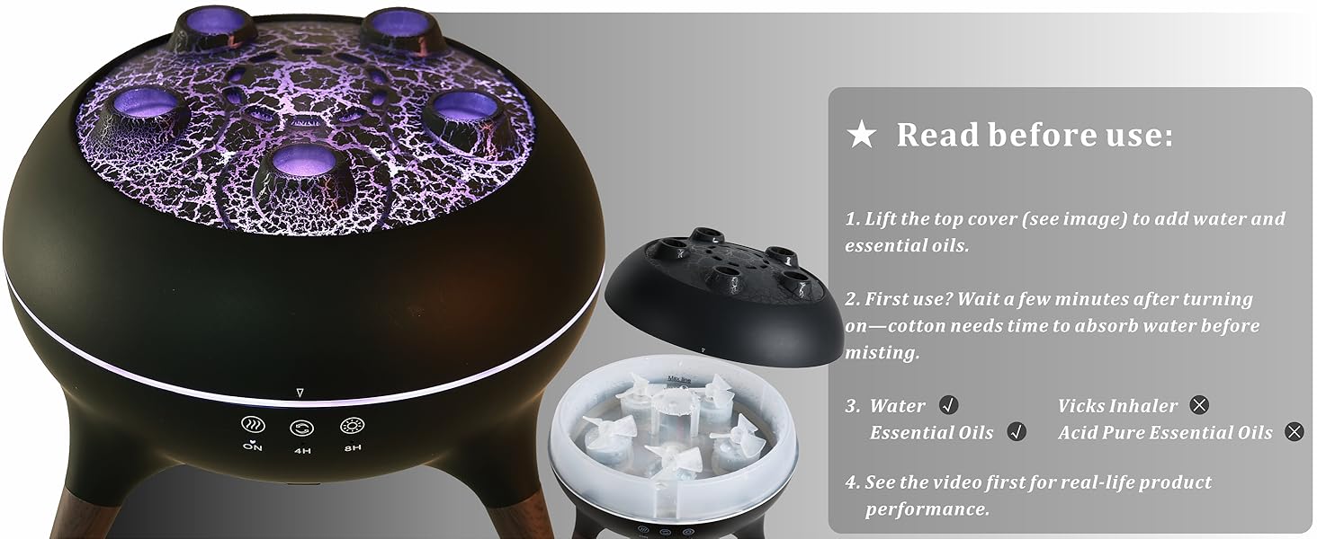 - Unique Dancing Jellyfish Air Diffuser - Exquisite crater crack design with Dancing Jellyfish cool mist, it’s not only an humidifier aromatherapy diffuser, but also a aesthetic home decoration artwork to release your stress.