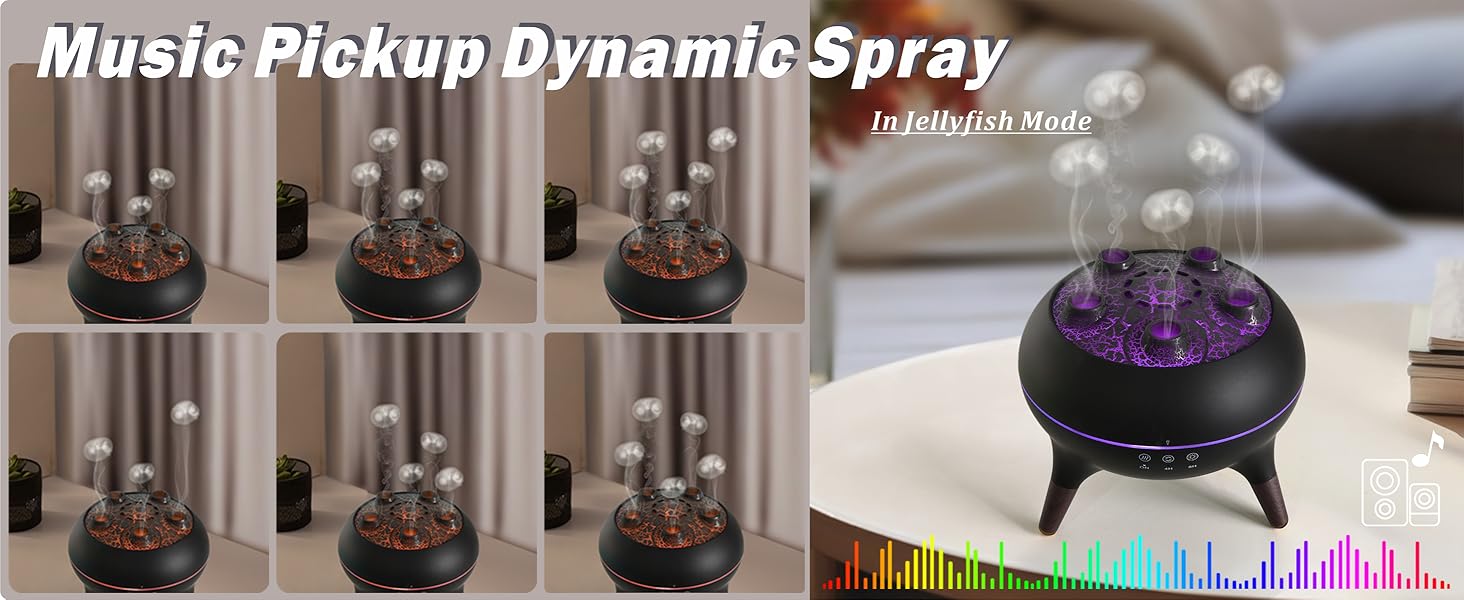 - Music-Responsive Mist Fun: Activate the sound-pickup mode in the jellyfish mist humidifier and watch the mist sync with your music. Bring your tunes to life as the mist diffuser responds to every beat, adding an interactive, fun element to your space