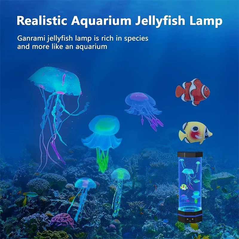 Add a magical touch to your home or office with the Jellyfish Lava Lamp 17 Colors Changing 15-Inch Jellyfish Lamp. This stunning decorative lamp features realistic jellyfish floating gracefully in a vivid, color-changing aquarium. Equipped with a remote control and USB plug-in functionality, this creative bubble fish lamp is not only a decorative piece but also a calming night light and creative projector. Perfect for kids, adults, or anyone looking to enhance their space with a soothing ambiance.